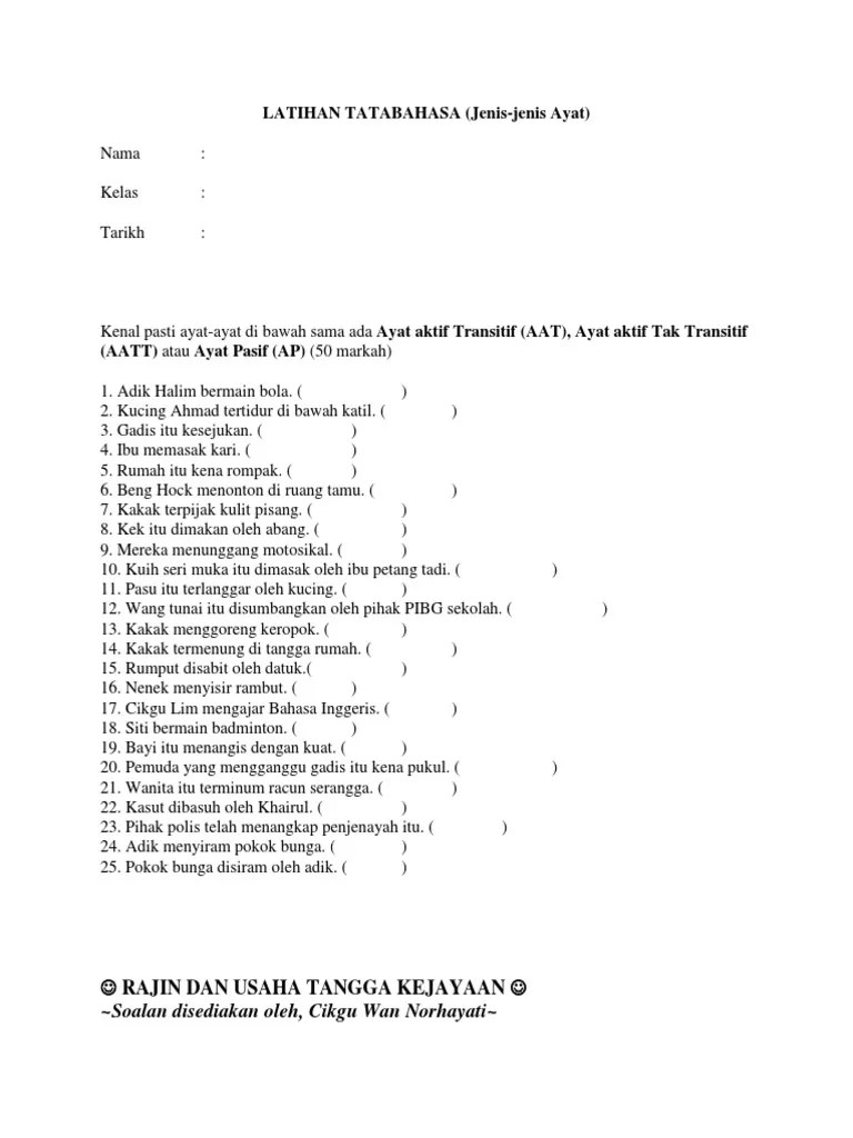Latihan bahasa melayu tahun 6 tatabahasa (1) latihan bahasa melayu tingkatan 2 (1) latihan bm (10) latihan bm antonim (3).